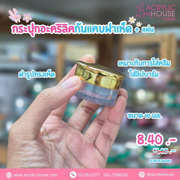 กระปุกอะคริลิคก้นแคบหัวเห็ด+แผ่น