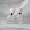 ขวดแก้วกลมเหลี่ยมเพชรไล่สี+ปั๊ม+ฝาครอบบาน