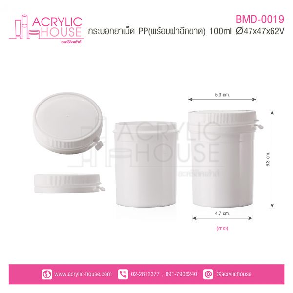 กระบอกยาเม็ด PP (พร้อมฝาฉีดขาด) 100ml