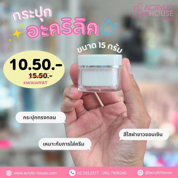 | KC053 | 15g | ใสฝาขาวขอบเงิน | 15.50 ลดเหลือ 10.50 | – |