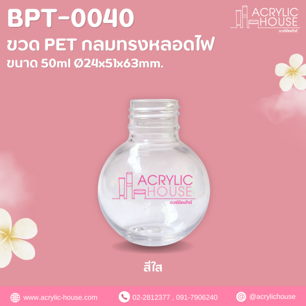 ขวด PET กลมทรงหลอดไฟ ขนาด 50ml
