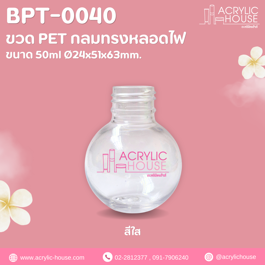 ขวด PET กลมทรงหลอดไฟ ขนาด 50ml