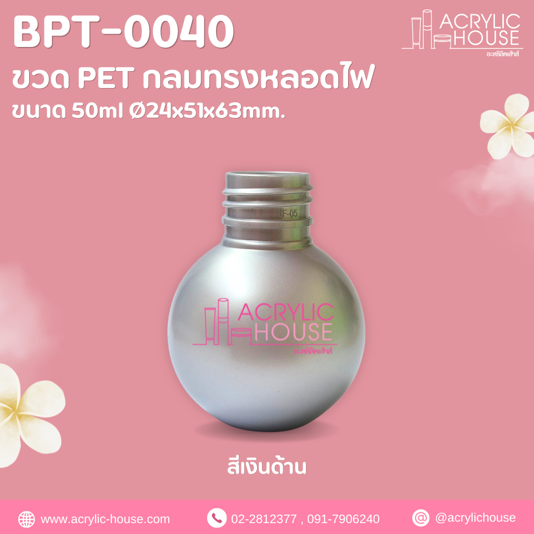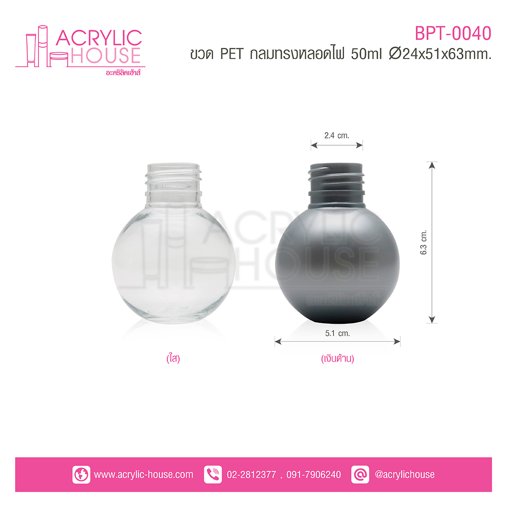 ขวด PET กลมทรงหลอดไฟ ขนาด 50ml