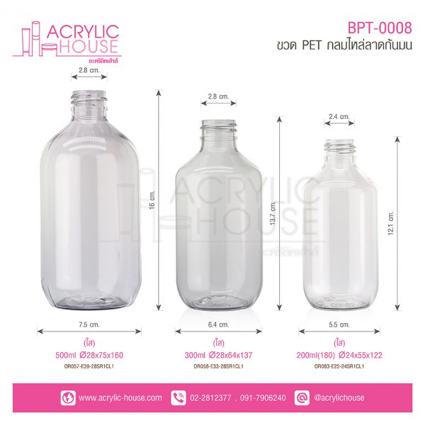 ขวด PET กลมไหล่ลาดก้นมน 500ml