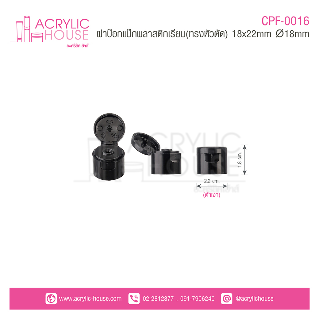 ฝาป๊อกแป๊กพลาสติกเรียบ(ทรงหัวตัด) 18mm