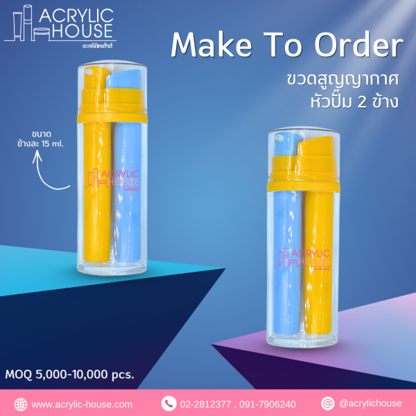 ขวดสูญญากาศหัวปั๊ม 2 ข้าง แต่ละข้างบรรจุ 15ml.
