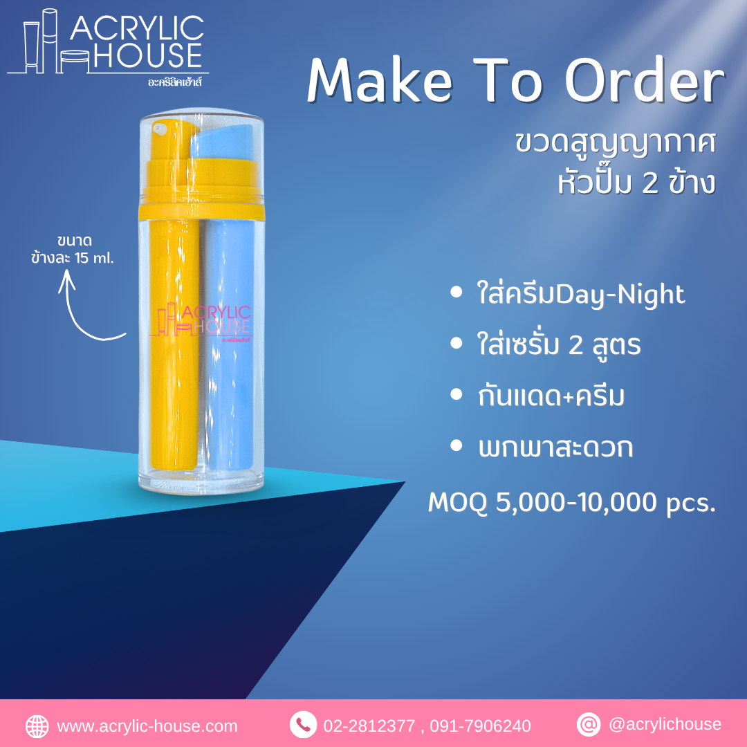 ขวดสูญญากาศหัวปั๊ม 2 ข้าง แต่ละข้างบรรจุ 15ml.
